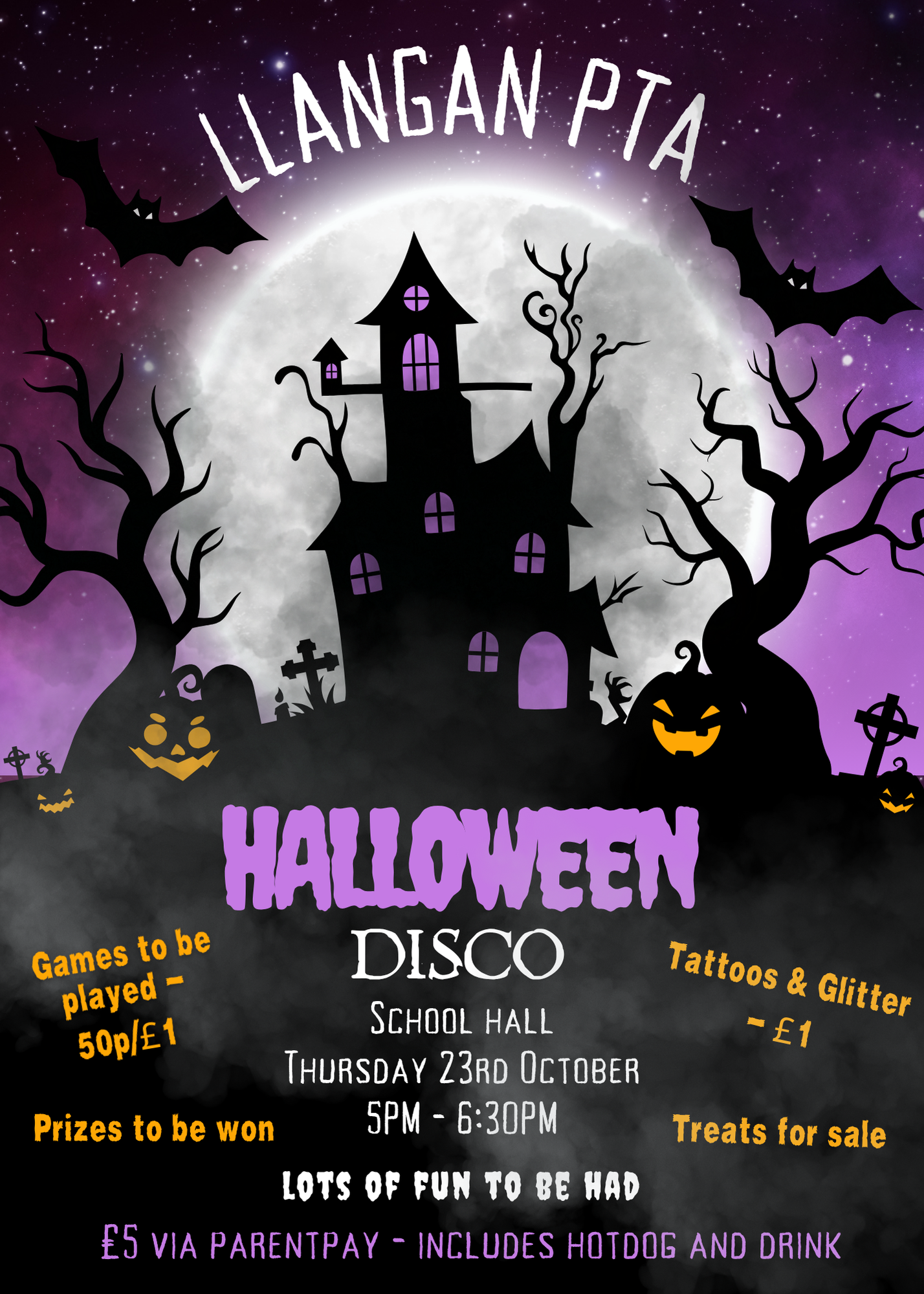 Come along for a spooky good time—costumes welcome! #LlanganPTA #LlanganPrimary #HalloweenDisco #ValeOfGlamorgan #Community